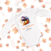 This beautiful personalised Babies First Halloween outfit with cute witches cat and pumpkin design is available as a long sleeved bodysuit or a babygrow / sleepsuit.