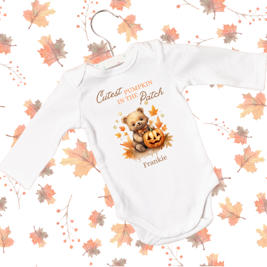 Personalised Babies First pumpkin Patch Cutest Pumpkin In The Patch Babygrow / Bodysuit